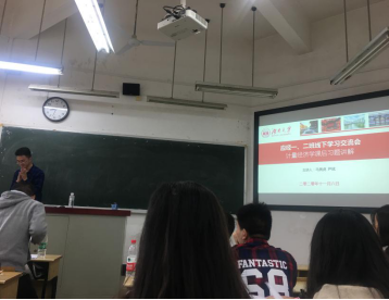 尹斌担当了讲题重任,一人连讲5个大题。作为数学专业科班出身,他证明严谨,对于模棱两可、生搬硬套的步骤“零容忍”。讲解过程中,他将题目步骤写得清晰明了,阐述了每一步“如何来”、“如何做”的缘由,采用“有果索因”的数学技巧进行证明,带给同学们一种全新的解题体验。尤其是当大家注意到他仅靠一本书就能在黑板上演算时,同学们为尹斌扎实的专业知识能力、高超的数学运算能力而喝彩点赞。讲解完后,同学们还进行了题目探讨与心得交流。