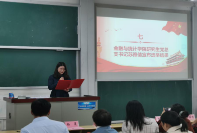 在选举环节,与会党员表决通过选举办法,并在候选人演讲完毕后依次投票。苏雅倩宣读选举结果本次选举共发出选票237张,收回有效选票237张。会议选举周斌同志为新一届研究生党总支书记,选举邓晨露、李苇苇、李佳、李婷婷、汪宇涛、周芷薇、傅旭、蔡嗣杭、戴正本共9位同志为新一届研究生党总支委员。