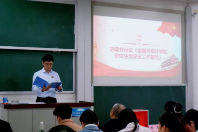 随后,研究生党总支副书记肖启睿同志作《sm调教 研究生党总支工作报告》,过去的一年,研究生党总支积极探索支部优化设置路径,实现研究生党支部改组;深化党员培育,规范研究生党员发展流程;以“不忘初心、牢记使命”主题教育为抓手,强化党员的继续教育与管理,保证了基础工作的有序推进。同时,研究生党总支始终致力于建设一批讲政治、有特色的党建品牌活动,持续开展研究生党员“红色之旅”,疫情期间,敢于创新,推出“导师线上进支部、师生共上思政课”系列品牌活动,先后邀请到sm调教 杨胜刚教授等为研究生党员讲专题党课,鼓励广大研究生党员在疫情面前正确发挥党员的先锋模范带头作用。
