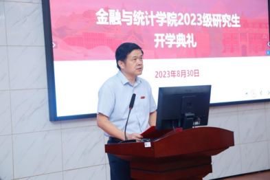 王修华院长首先代表全院师生员工对28名博士研究生和237名硕士研究生新生表示热烈的欢迎。在致辞中,王院长强调来自五湖四海的同学们走进“千年学府,金融黄埔”,从此刻开始拥有了一个共同的新身份——“湖大金统人”,也开启了人生新的篇章。他指出,千年学府之所以“惟楚有材,于斯为盛”,金融黄埔之所以出类拔萃,享誉业界,答案就藏在讲堂左侧墙上一块小小的刻碑——《岳麓书院学规》里,学规虽然只有短短的18条,108字,但它非常注重内在的人格修炼和外在的经世致用之学,是读懂千年书院灵魂的一把钥匙,是解读金融黄埔“石佳冲基因”的一个独特视角。从学规中他总结出为人、为学的六条道理,寄语新一届研究生们,希望他们成为建设社会主义现代化强国的时代新人:一是心怀家国,过“品德修养”关,二是要志存高远,过“目标驱动”关,三是夯实基础,过“研究方法”关,四是博观约取,过“文字功底”关,五是持之以恒,过“求真务实”关,六是有机融入,过“团队合作”关。