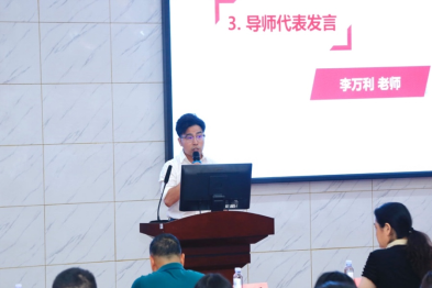 李万利副教授作为研究生导师代表发言。他指出,研究生阶段的学习与本科有诸多不同之处,同学们要正确认识并平衡好课程学习、学术训练与实习之间的关系,要着力培养自己的洞察力与逻辑思维能力,要优化思考与解决问题的方式。他还以过来人的身份给同学们提了两点建议:一是不要“躺平”怠惰,要认真投入、负责任地对待每一件事;二是要立志高远,不仅要把握当下的机会,更应该注重长远的规划。
