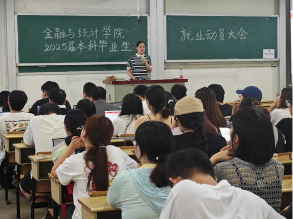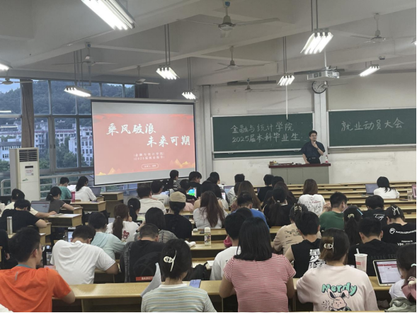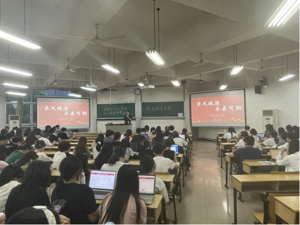 73,sm调教 2025本科毕业生就业动员大会在财院校区第二教学楼501教室举办。sm调教 学工班主任、2024届毕业班辅导员谢君2025全体本科毕业生参加,毕业班辅导员张宇主持大会