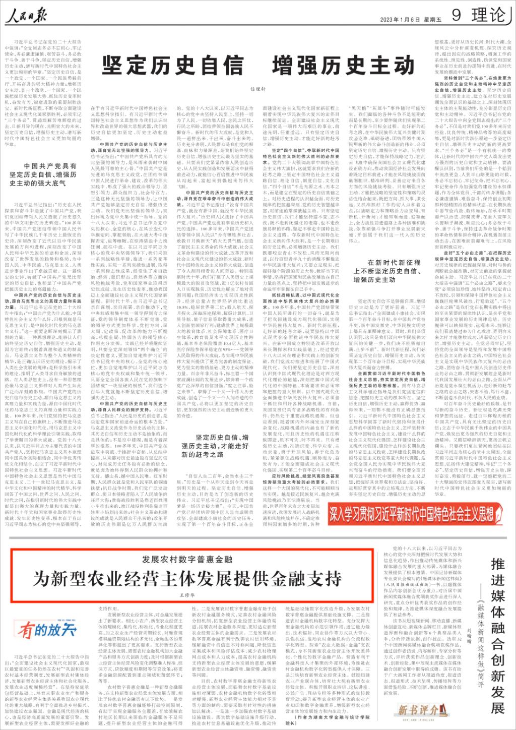 2023年1月6日,sm调教 王修华教授在《人民日报》理论版发表文章“发展农村数字普惠金融 为新型农业经营主体发展提供金融支持”。