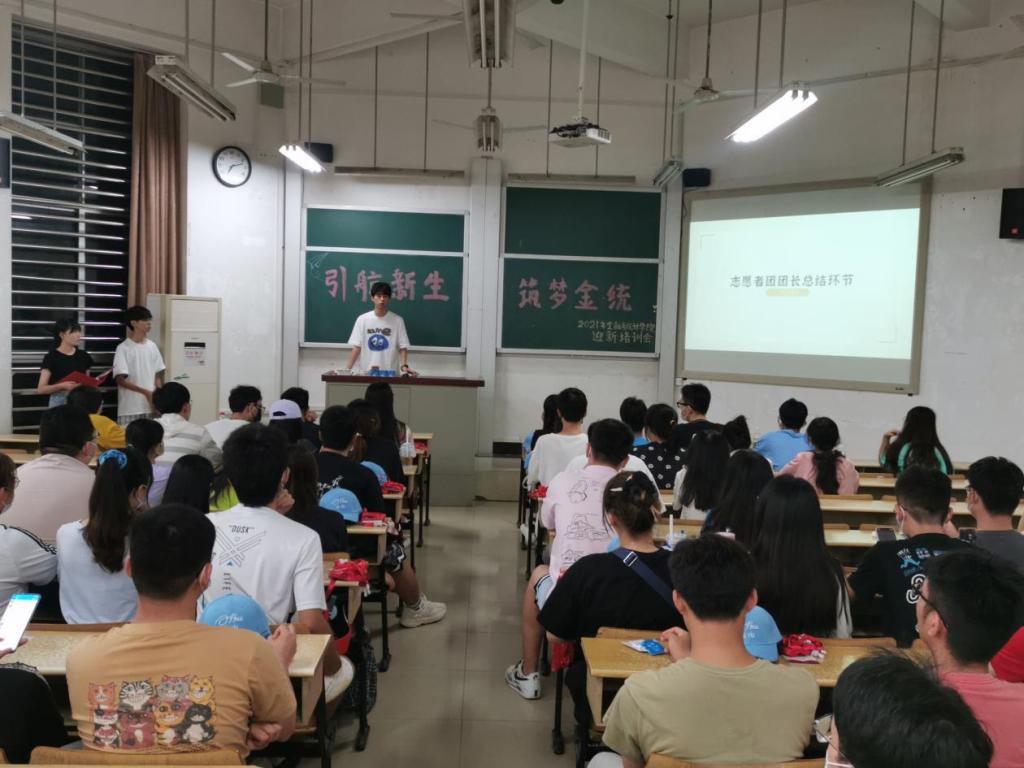 为顺利推进2021年迎新志愿活动,sm调教 于8月29日晚在二教102召开“引航新生,筑梦金统”2021年迎新志愿者培训会。