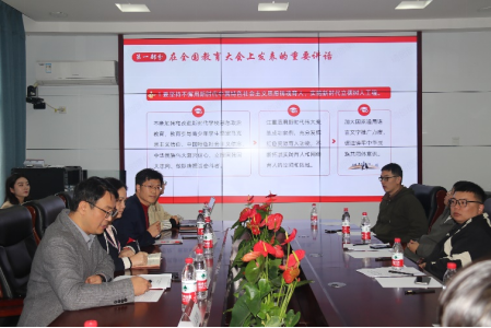 颜李领学党的二十届三中全会精神与全国教育大会精神,他指出,育人先育己,学生工作队伍需要加强理论学习,提高思政工作水平,希望全体专兼职辅导员、班主任形成思政育人合力,促进教育主体多元互动。与会老师围绕进一步全面深化改革的目标原则和重大举措、如何大力弘扬教育家精神谈了学习体会。