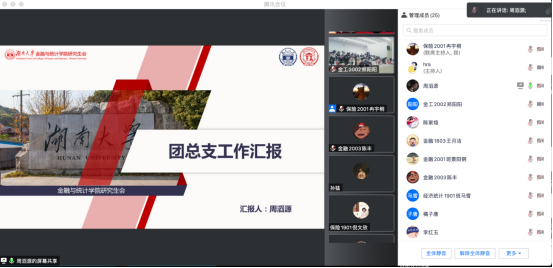 各年级团总支部书记分别从团组织基本工作情况、团组织工作措施及成效、存在问题与思考、未来工作计划及展望等方面依次进行汇报。研究生团总支部副书记周滔源分享了在加强团建工作、夯实基础工作、打造特色品牌方面的经验。本科2018级团总支认真总结工作,探讨存在问题,做出了“加强创新、固本强基、强调落实、奉献友爱”四项工作规划。本科2019级团总支书记肖悦介绍了团总支部制度建设成效与三会两制一课落实情况,以各种方式深入开展“学党史、强信念、跟党走”主题教育活动,获得了在场师生的好评。本科2020级团总支组织开展多项贴合学生实践与学习的课外实践活动,在调动团员参与志愿活动积极性和提升团员思想认知两方面取得了较好成绩。