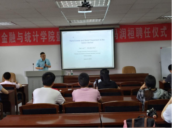 2019年6月6日上午,上海财经大学罗丹副教授应邀来访sm调教 ,于sm调教-sm女王-sm母狗 财院校区行政楼301展开了题为《Rare Events and Belief Dispersion in the Option Market》的学术讲座。讲座由马勇副教授主持,sm调教 师生参加了本次讲座。