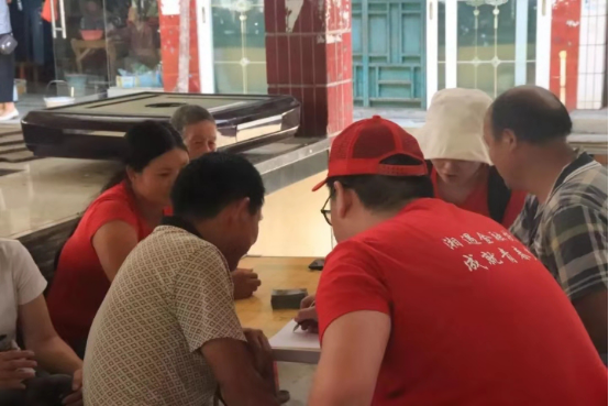 在说明来意后,上梧江瑶族乡乡民热情地招待我们,为大家递上西瓜和水,让我们倍感亲切。与前一天的调研相比,这里的乡民们对借贷、理财等金融知识更加了解,贷款和购买保险的意识更加强烈,许多小店店主都会选择通过贷款来扩大生产经营。