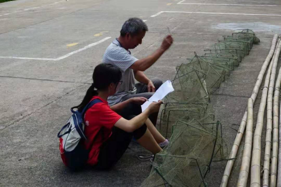 离开民俗街,沿着乡政府的方向前行,我们遇到一位正在编制渔网的老人家,老人家的家庭并不富裕,仅靠养的鱼和鸡来自给自足。他告诉我们,上梧江瑶族乡虽然风景优美,但是交通不便,青年壮年劳动力流失严重,因此也没什么人愿意来旅游,在这里发展旅游业是一件特别困难的事情。但我们相信在国家及当地政府的不断帮扶下,我国乡村振兴指日可待!
