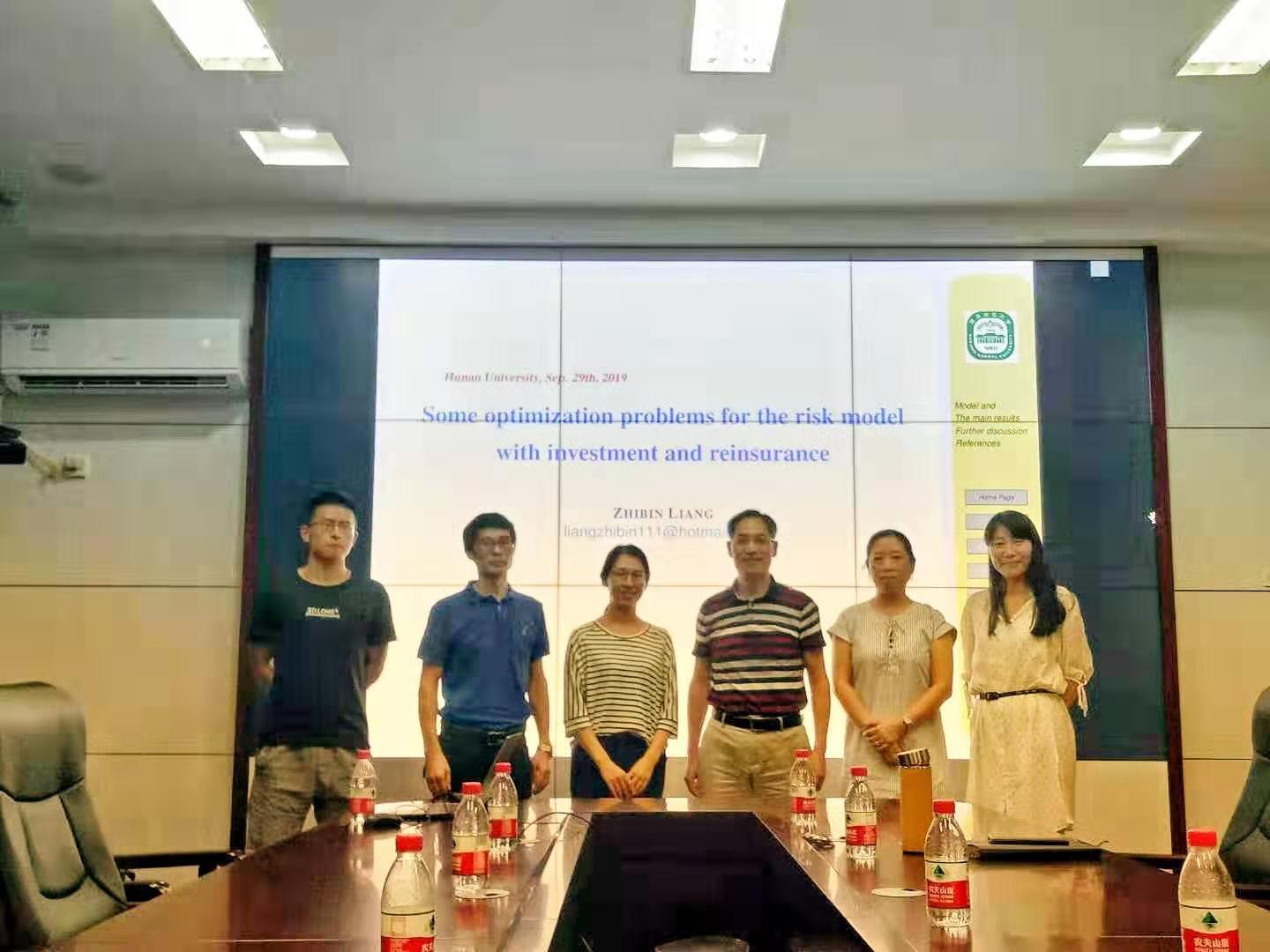 9月29日下午,第234期金融与统计论坛在红楼226会议室举行,本次论坛的主题是:Some optimization problems for the risk models with investment and reinsurance,主讲人是南京师范大学的梁志彬教授。此次论坛由sm调教 副院长陈迪红教授主持,sm调教 保险系主任张宁,风险管理与保险精算研究所所长张琳等领导和老师,以及本院博士生、研究生踊跃参与此次论坛。