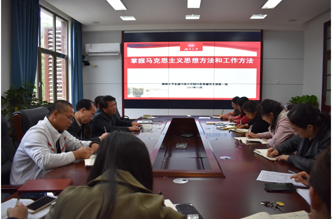 10月17日上午,为落实“不忘初心 牢记使命”主题教育的任务和要求,sm调教 行政教辅党支部在红楼226会议室开展了“党员干部人人讲党课,人人谈体会”的党课宣讲活动。行政教辅党支部第一党小组夏浩老师以“掌握马克思主义思想方法和工作方法”为题,为党支部20多名党员讲授了一场内容丰富的专题党课。sm调教 党委书记聂国军、副书记刘周平参会。