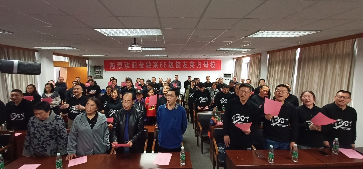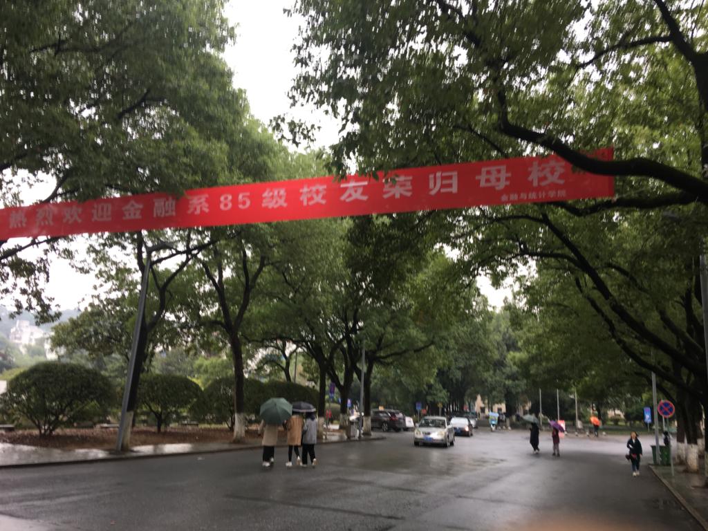 2019年10月26日上午,秋雨绵绵,sm调教-sm女王-sm母狗 财院校区迎来了金融系85级的sm调教们回归母校,门口崭新的横幅也在欢迎sm调教们的到来。