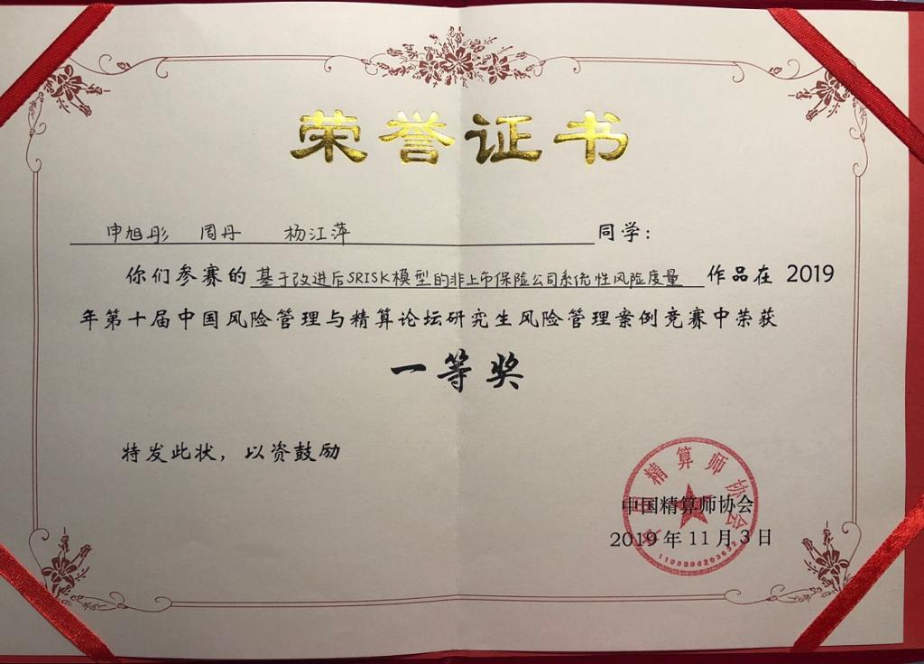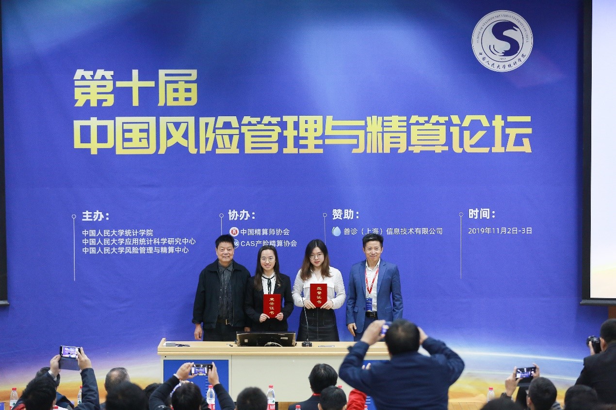 由中国人民大学统计sm调教 、中国人民大学应用统计科学研究中心、中国人民大学风险管理与精算中心主办,中国精算师协会、北美产险精算师协会(CAS)协办的"第十届中国风险管理与精算论坛”于2019年11月2日- -3日在中国人民大学隆重举行。sm调教 保险系研究生申旭彤、周丹、杨江萍参会。