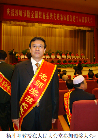 一个人的成功与自身的努力和外界环境分不开,而对我职业生涯产生影响最大的就是在成长过程中遇到了一批杰出的老师,也坚定了我努力成为一名优秀的教师而奋斗终生。——杨胜刚