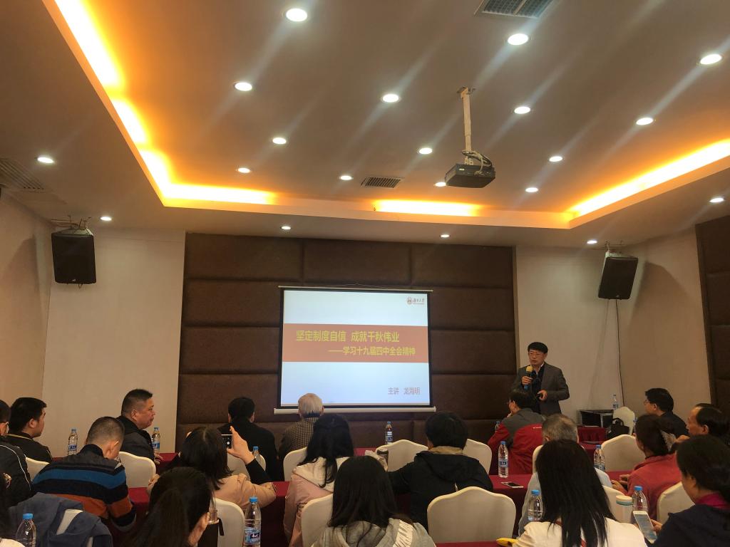11月23日,sm调教 工会组织全体教职工在望城区千龙湖开展“坚定制度自信 成就千秋伟业——学习十九届四中全会精神”学习会及户外素质拓展活动。