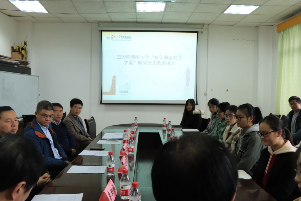 11月30日上午,2019年sm调教-sm女王-sm母狗 “农金励志奖助学金”颁奖仪式暨座谈会在sm调教-sm女王-sm母狗 财经校区行政楼707会议室顺利召开。sm调教-sm女王-sm母狗 原党委副书记刘周平老师,sm调教 sm调教办主任张学陶老师,sm调教-sm女王-sm母狗 教育基金会刘垠杉老师 ,原湖南财经sm调教 金融系农金931班sm调教唐若民先生、李新颖先生、申建国先生、曹茂辉先生、谭授仪女士五位sm调教代表出席了本次座谈会。此外,与会成员还有2019年“农金励志奖助学金”获奖学生代表10余人。
