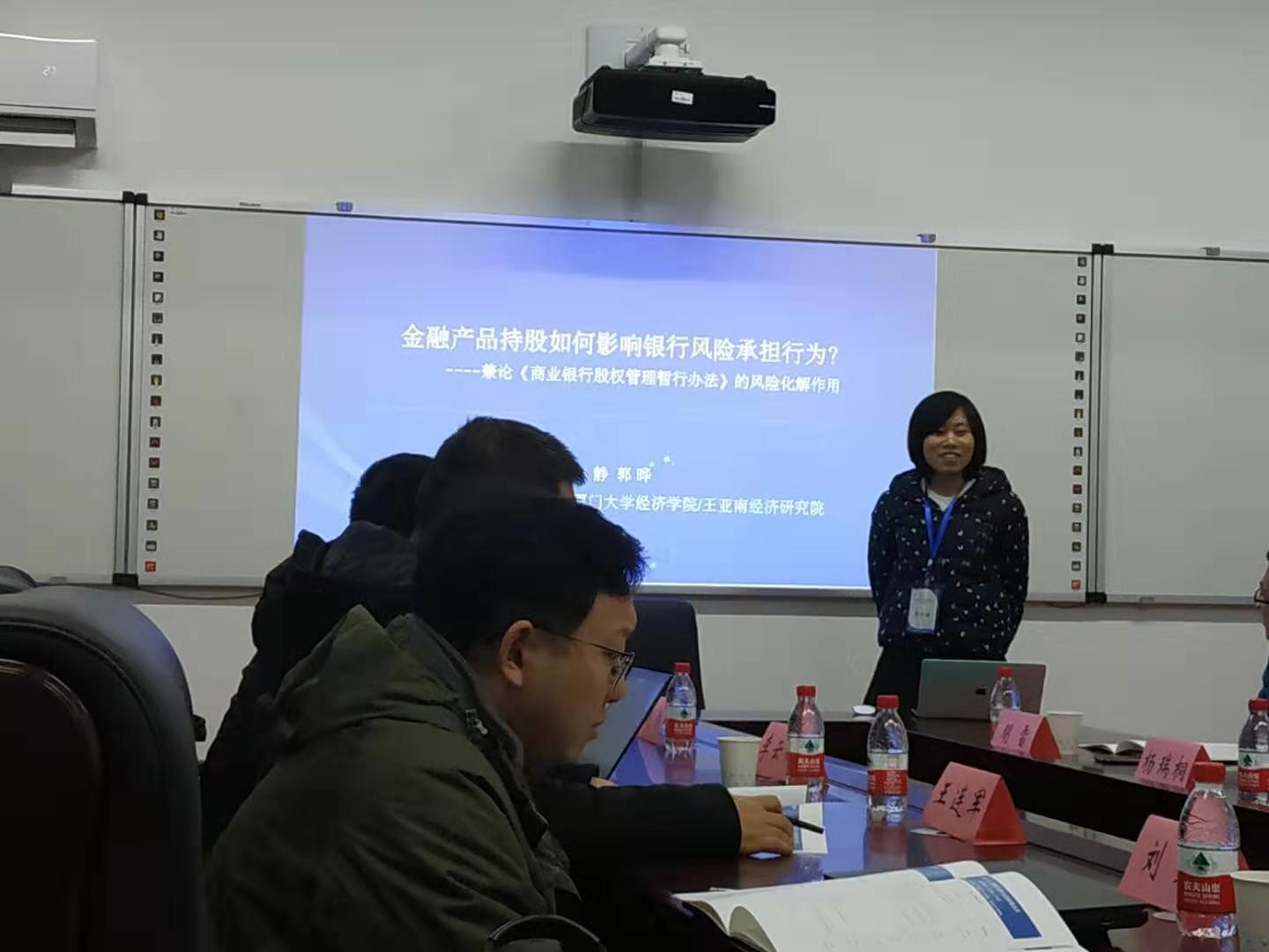 分论坛上半场由sm调教-sm女王-sm母狗 的赵静助理教授基于“为什么监管越来越严格,银行的风险却越来越大?”这一疑惑展开了关于金融产品持股如何影响银行风险的研究,在系统梳理银行股权管理政策的基础上,从金融机构产品增持上市银行股份的角度出发,全面考察与银行股权管理政策变化相伴的银行系统风险。并且根据研究结果,得出金融产品投资上市银行时应该合理持股比例,加强银行股权管理、防范“股东乱象”行为的启示。