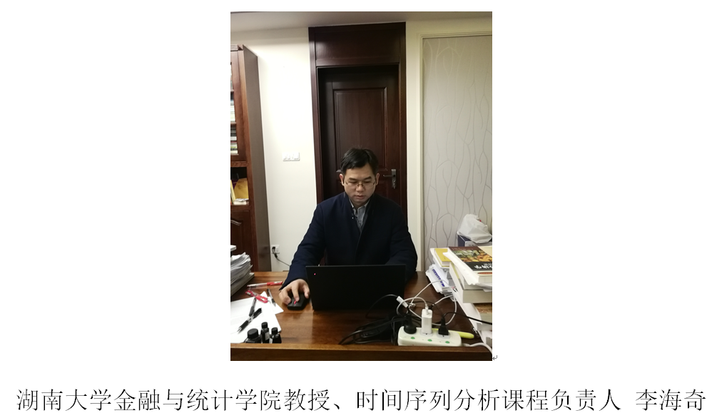 李老师还向课程组强调:要坚持以学生为中心,以学生发展为中心,以学生学习效果为中心的“新三中心”基本原则,要实现“停课不停教、停课不停学”的目标,并以此作为契机不断推进金融工程系的慕课及线上教学的建设。可以说,在正式授课还未进行前,时间序列分析课程组已经进行了充分的准备。课程组成员老师在此基础上进行了多次沟通,逐步统一了线上教学平台、教学进度,并形成了有效的教学方案。另外,由于团队老师们的住所各有各的特殊情况(网络环境、直播设备),有的老师家里还有二孩。因此为了保证线上教学的顺利进行,团队老师都提前对线上教学进行了演练,尽量做到“因地制宜、因材施教”,尽可能地提高教学质量。