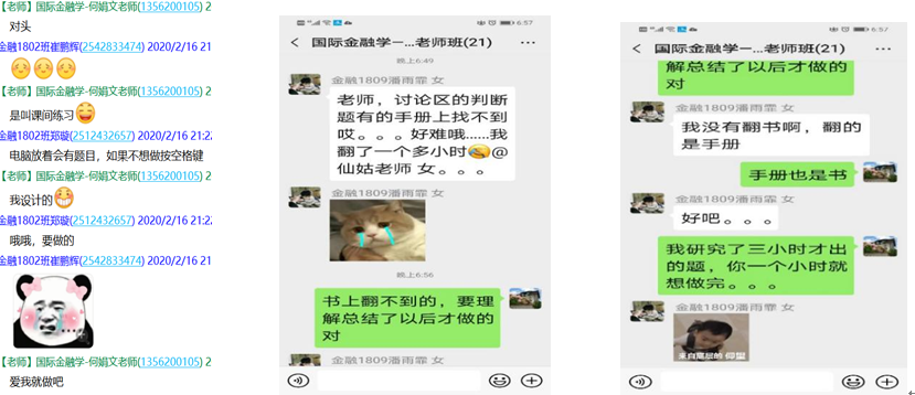 “严”中有“爱”,一直是国际金融团队老师的教育标签。为了共同抗击疫情,帮助在校学生顺利完成学业,杨胜刚老师建立师生专题微信群,要求学生及时沟通,为学生排忧解难。