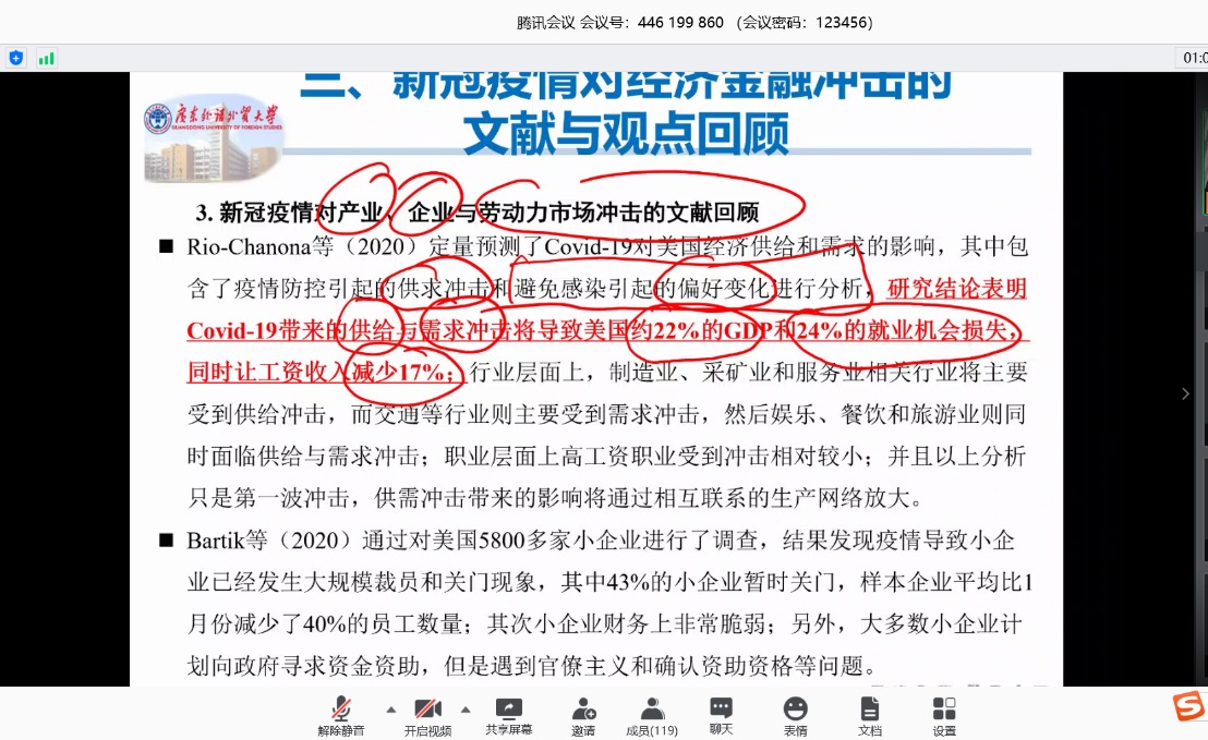 为在疫情期间更好打造“云上学术”氛围,2020年5月20日第252期金融与统计论坛在腾讯会议线上举行,本次论坛的主题是:新冠疫情对经济金融的冲击研究:基于国际文献综述及其扩展政策分析,主讲人是广东外语外贸大学金融sm调教 院长易行健教授。此次论坛由sm调教 院长潘敏教授主持,sm调教 教师及博士生等119人踊跃参与此次论坛。