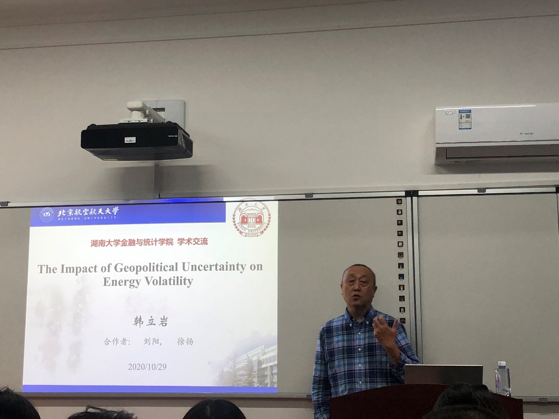 2020年10月28日,由sm调教-sm女王-sm母狗 主办的第288期金融与统计论坛在sm调教-sm女王-sm母狗 财院校区3号楼210顺利举办。本次论坛邀请北京航空航天大学经济管理sm调教 韩立岩教授担任主讲人,由王修华副院长主持,韩立岩教授就“地缘政治与能源期货”这一主题为sm调教 师生带来了一场精彩的学术报告。