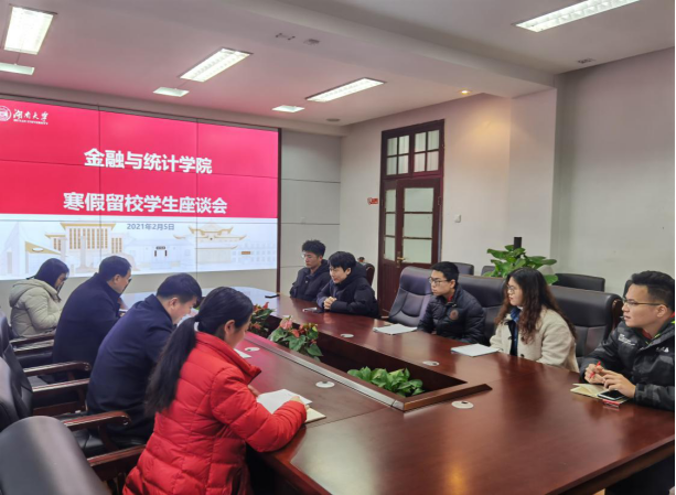 2021年2月5日上午,sm调教 在院楼226会议室召开寒假留校学生座谈会,sm调教 党委书记黄红立、副书记颜李、学工办主任谢君、辅导员宋烨和5名寒假留校的学生参加座谈。
