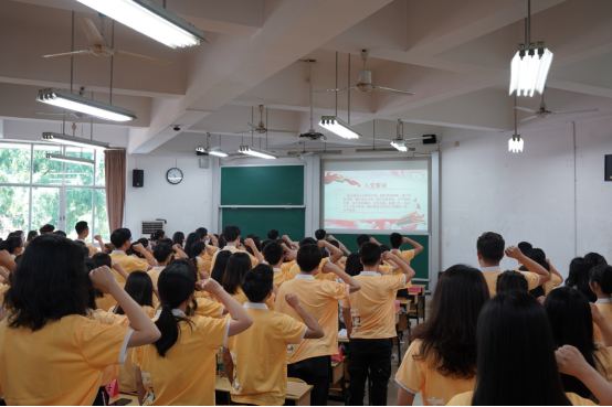 毕业生党员代表洪俊敏首先带领全体毕业生党员重温入党誓词,再次回顾自己曾对党许下的庄严承诺。