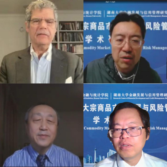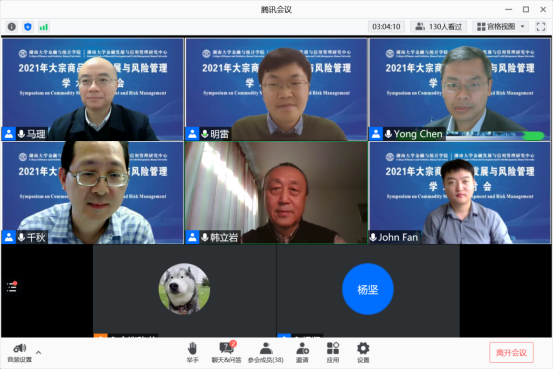 随后,五位学者以“后疫情时代的大宗商品”为主题开展了圆桌讨论。讨论由北京航空航天大学韩立岩教授主持,来自Texas A&M University的陈勇教授、University of Hawaii的刘千秋教授、Griffith University的樊华教授和sm调教-sm女王-sm母狗 的马理教授等参与了讨论。本次讨论首先从通货膨胀和货币政策的角度探讨了外部冲击对大宗商品市场的影响。之后各位专家将视角由宏观转向微观,探讨了大宗商品价格上涨对小微企业的影响。最后,基于以上讨论,与会专家进一步探讨了大宗商品市场的发展趋势,提出了仍待解决的问题,并针对上述问题提供了针对性的政策建议。