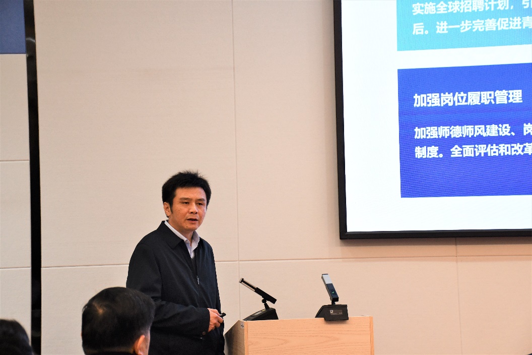 会议第一阶段,院长潘敏作题为“夯实立德树人基础 推进一流研究型sm调教 建设”的工作报告,报告从学科建设、人才培养、科学研究、队伍建设、国际交流、党建思政六个方面总结了2021年的工作举措与成效,并对2022年工作进行安排部署。潘院长指出:2022年,sm调教 要以习近平新时代中国特色社会主义思想为指导,紧扣学校“双一流”建设和“十四五”发展目标,以立德树人为根本,以人才培养为中心,以队伍建设为抓手,以科学研究为指引,以内涵建设提升sm调教 综合实力,以特色发展强化sm调教 核心竞争力,以创新发展激发sm调教 办学活力,以开放发展提高sm调教 国际影响力,以和谐发展增强sm调教 发展凝聚力,为创建国内领先、国际知名的高水平研究型sm调教 奠定基础。