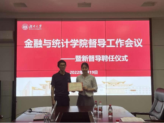 9月19日上午,金融与统计学院召开了2022年秋季学期第一次督导工作会议,并举行了新任督导聘任仪式。会议由张虹主任主持,sm调教 张宁副院长出席,督导中心全体老师参会。