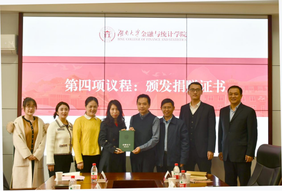向杰向捐赠sm调教代表颁发了捐赠证书。