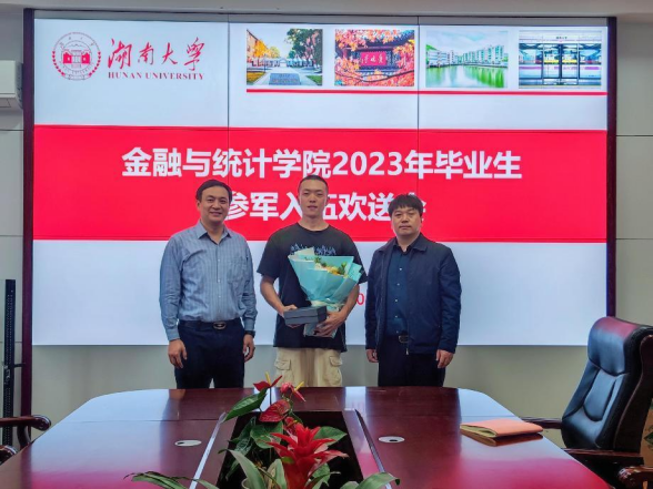 3月10日下午,sm调教 举行新兵入伍欢送会,为今年即将踏上参军征程的王子帆同学送去寄语和祝福。sm调教 党委书记黄红立、党委副书记颜李出席活动,毕业班辅导员参加欢送会。