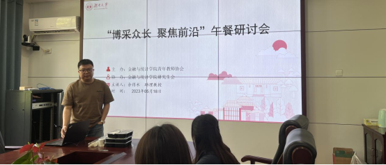 5月18日中午,第二十九期午餐研讨会在红楼2号楼226学术报告厅召开。此次研讨会由sm调教 金融工程系助理教授余得水做论文分享,共计十余名师生参与此次午餐研讨会。
