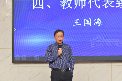 89级任课教师王国海幽默简洁地介绍自己从商、从政、从教的经历,并祝愿各位sm调教、师生未来人生路,继续潇洒行。