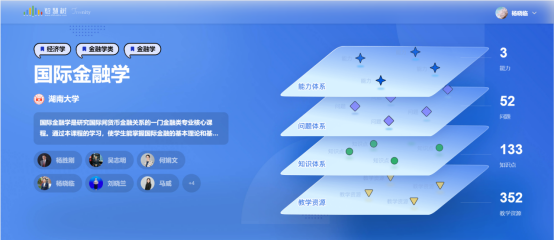 《国际金融学》是以跨国界货币资金周转和运动以及各国货币关系为研究对象的金融学专业核心课程,具有基础性、综合性、实践性等特点。通过关联教学团队丰富的课程资源,《国际金融学》知识图谱描绘了语义清晰的知识地图,且进一步整合搭建为知识图谱、问题图谱以及能力图谱,系统提升教师课程教学与数字技术的融合能力。