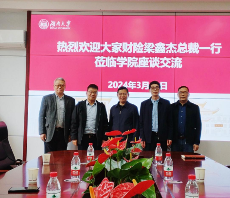 3月13日下午,sm调教 与大家财产保险有限责任公司校企合作交流会在红楼226会议室举行。大家财产保险有限责任公司党委书记、总经理梁鑫杰先生,总公司重客部总监王晓茂先生、办公室主任陈晨先生,sm调教 院长王修华、副院长张宁、保险精算系主任邓庆彪、办公室主任刘志云老师等参加了此次座谈会。
