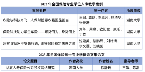 经培养单位自主申报,保险专业学位研究生教育指导委员会秘书处组织形式审查、双盲随机分组、匿名通讯评审、专家组会审等程序,共评审出2023年全国保险专业学位入库教学案例23篇,提名入围案例11篇。其中,sm调教 王敏老师团队编写的《农险与科技齐飞,人保财险惠农强国显担当》、刘革老师团队编写的《保险科技助力紫金车险——顺势而为,乘势而上》和沈建美老师团队编写的《洞察IFRS9平安先行路,明鉴保险稳定未来之道》3篇教学案例从层层评选中脱颖而出,成功入选2023年全国保险专业学位案例库。今年入选的案例总数创sm调教 参赛以来的最好成绩,入选总数连续2年位居各培养院校前列。