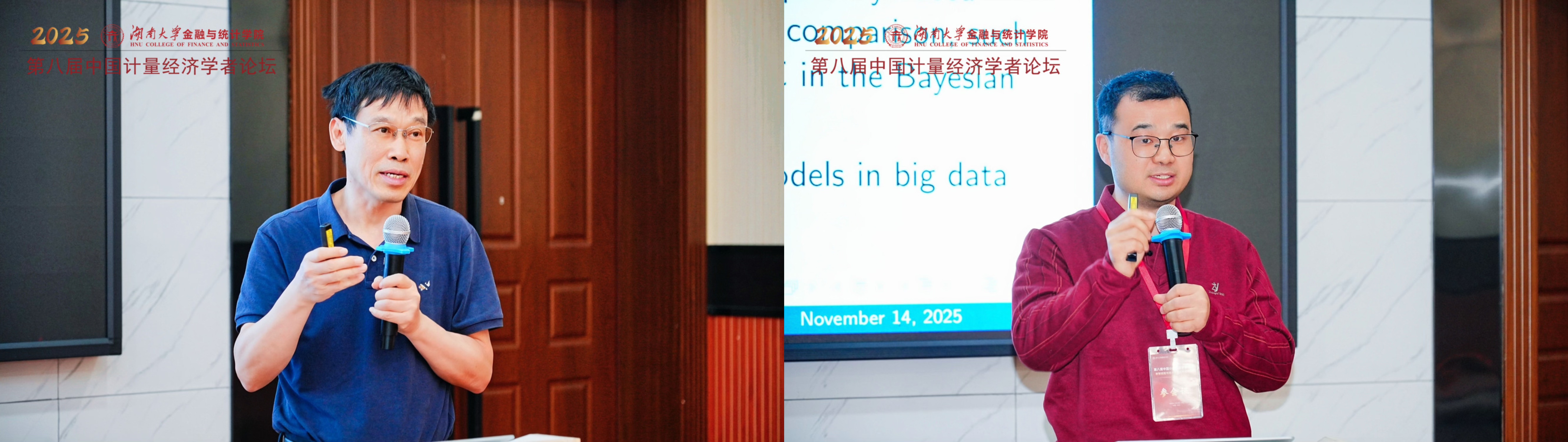 主旨报告六由武汉大学经济与管理sm调教 刘成教授主持。厦门大学经济sm调教 、王亚南经济研究院院长周颖刚教授的报告题为“Improving Mutual Fund Performance Evaluation Under the Conditional Stochastic Discount Factor Framework”。周颖刚教授指出传统基金绩效评估(如无条件alpha)存在缺陷,并构建了一个新的条件随机折现因子(SDF)框架。清华大学经济与管理sm调教 苏良军教授作了题为“Large Dimensional Factor Models with Many Latent Groups”的报告。苏良军教授将高维因子模型拓展到包含潜在分组结构的情形,以解决因子载荷中广泛存在的异质性问题。首都经济贸易大学副校长李鲲鹏教授的报告题为“On the Endogeneity of Spatial Weights Matrix”。李鲲鹏教授探讨了空间计量模型中空间权重矩阵(W)的内生性问题,即当W(如基于贸易)本身也由模型中的变量决定时,传统估计将产生偏误。美国南加州大学经济系萧政教授带来了题为“Semi-Parametric Estimation of All Regression Coefficients for Sample Selection Panel Interactive Effects Models”的报告。萧政教授同时处理了面板数据中的样本选择偏误和交互固定效应(即未观测共同因子)两大难题。