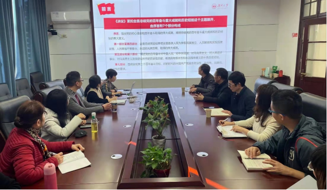 应用金融系支部书记成程主持并领学十九届六中全会精神的专题学习会议,支部全体党员参会。