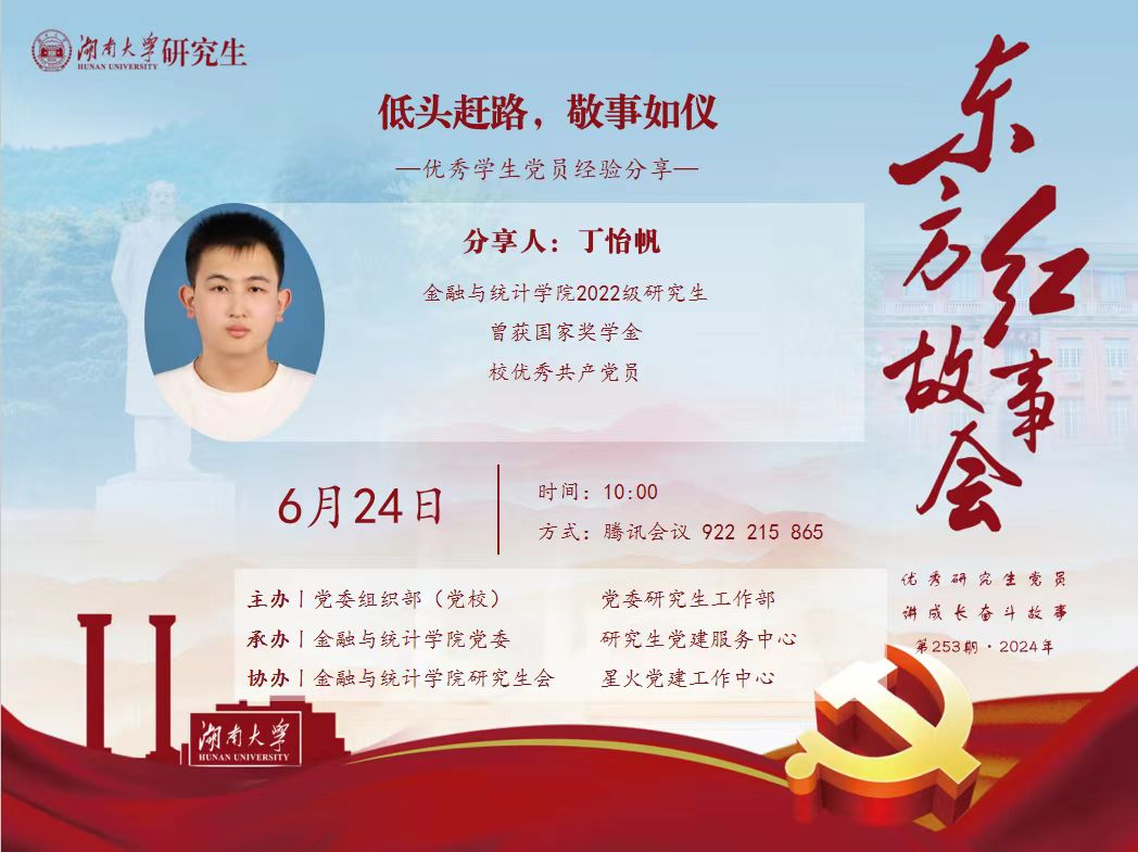 今年6月,在优秀党员经验分享会上,丁怡帆分享了一个自己的成长诀窍——学习的过程可以找一个爱好或者多运动,适当排解自己的压力。