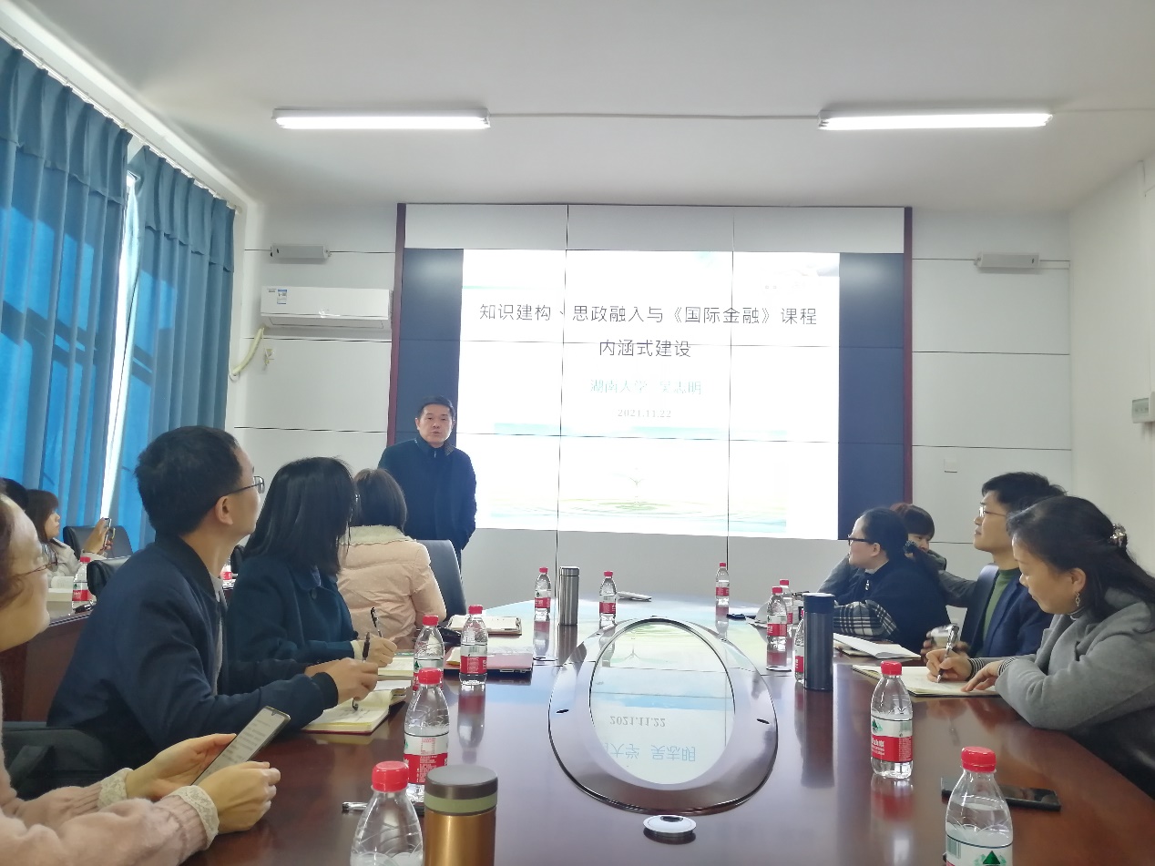 应用金融系马勇主任对课程思政建设的意义与发展目标要求进行了概述,针对课程思政案例、思政项目申报及思政团队建设等问题引出探讨。《商业银行管理学》课程团队负责人彭建刚教授指出,教材的演进与课堂教学应坚持课程思政与学科前沿相结合,体现历史与逻辑的辩证统一;同时应及时跟进国家战略和金融发展动态,讲好中国金融故事。