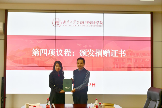 向杰向捐赠sm调教代表颁发了捐赠证书。